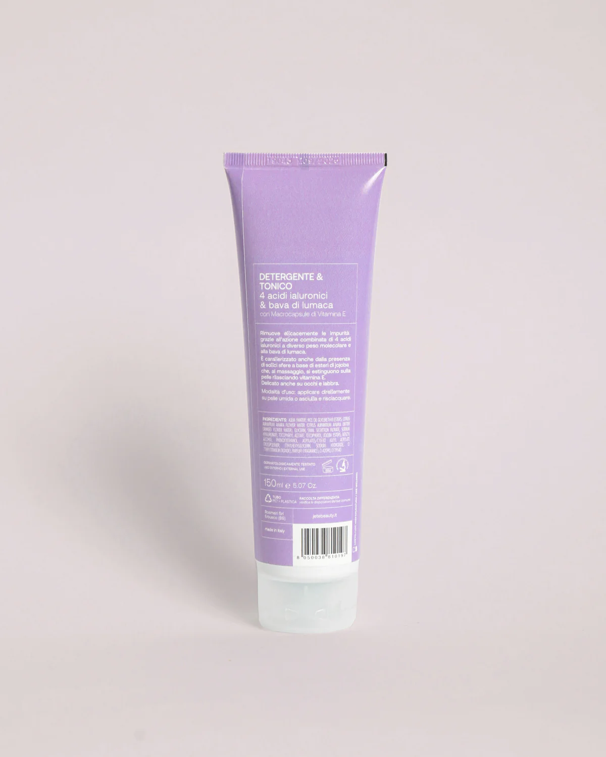 Detergente viso in gel dalle proprietà rinfrescanti ed emollienti. Questo prodotto svolge una doppia azione: rimuove efficacemente le impurità dalla pelle mentre la idrata, grazie all’azione combinata di 4 acidi ialuronici a diverso peso molecolare e alla bava di lumaca. Inoltre è caratterizzato dalla presenza di soffici sfere a base di esteri di jojoba che, al massaggio, si estinguono sulla pelle rilasciando vitamina E. Delicato anche su occhi e labbra.